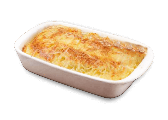 Viande hachée, crème fraîche, pommes de terre, fromage gratiné au four.